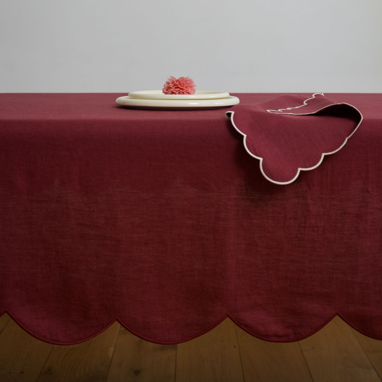 La serviette de bain ondulée en coton ivoire & bordeaux