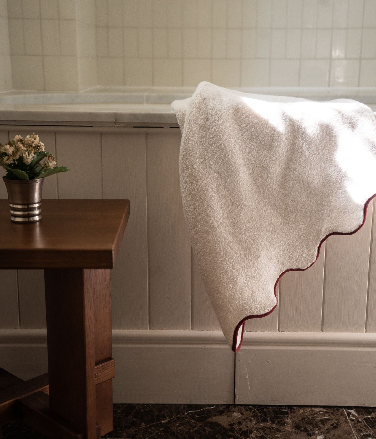 Le drap de bain ondulé en coton ivoire & bordeaux