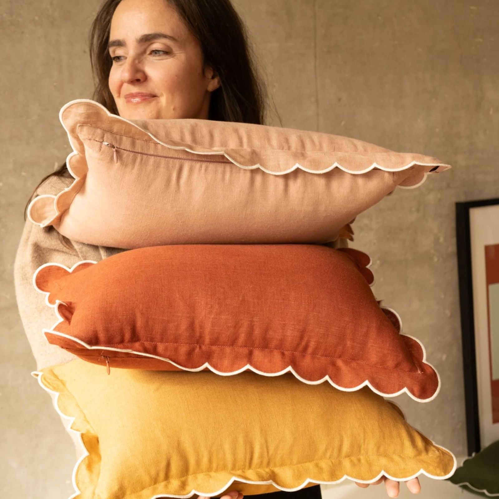 Les dessous de verre festonnés en lin Blanc (lot de 4)