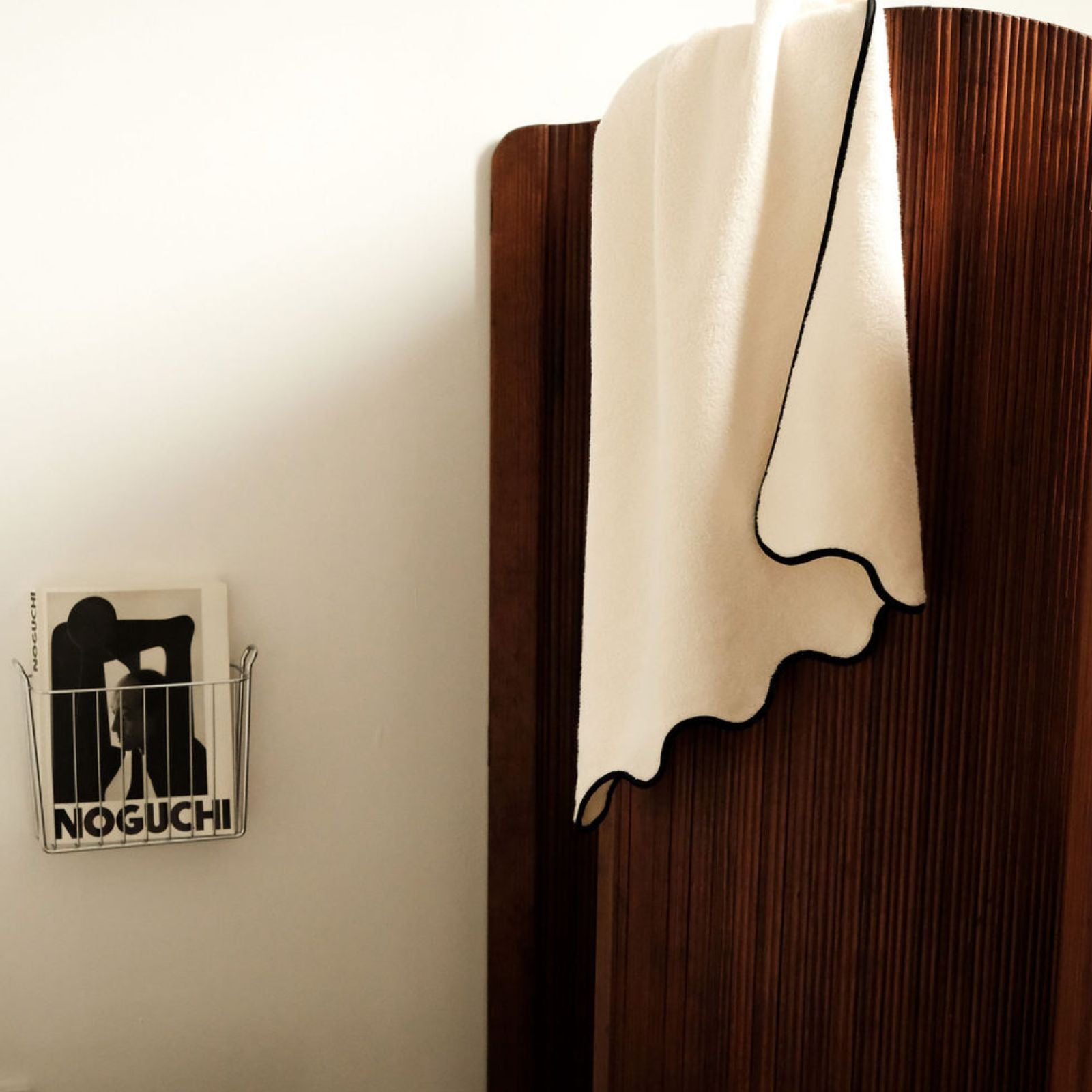 Le linge de bain Tomète s’habille de trois variations élégantes : ivoire/biais ondulé ivoire, ivoire/biais ondulé bordeaux et ivoire/biais ondulé noir. Des teintes intemporelles et raffinées qui s’intègrent facilement dans toutes les salles de bain.