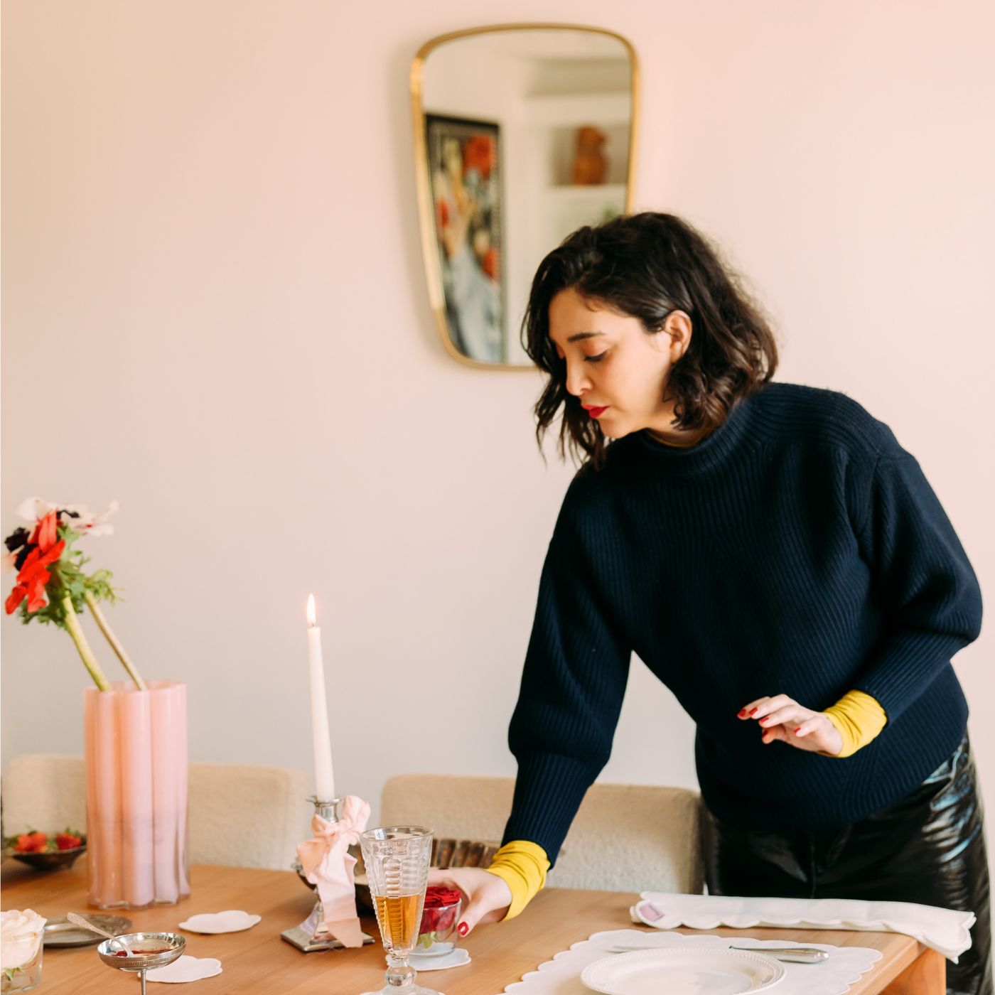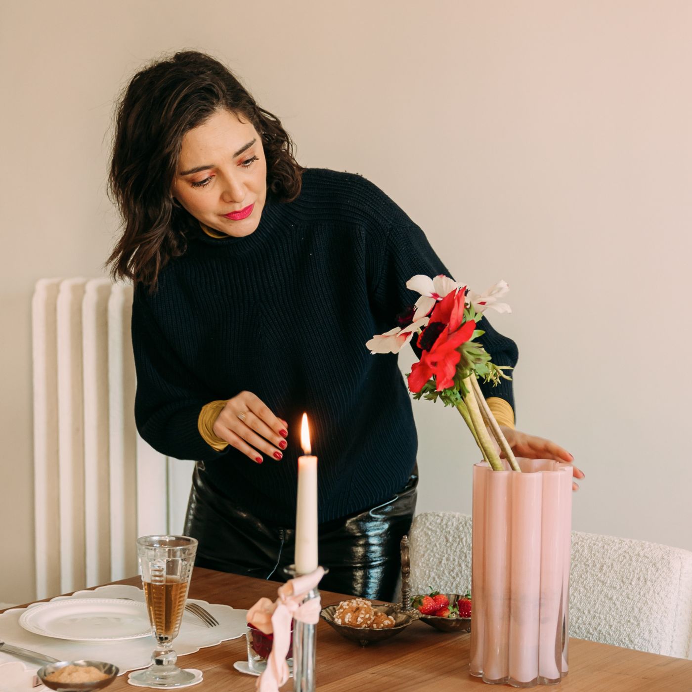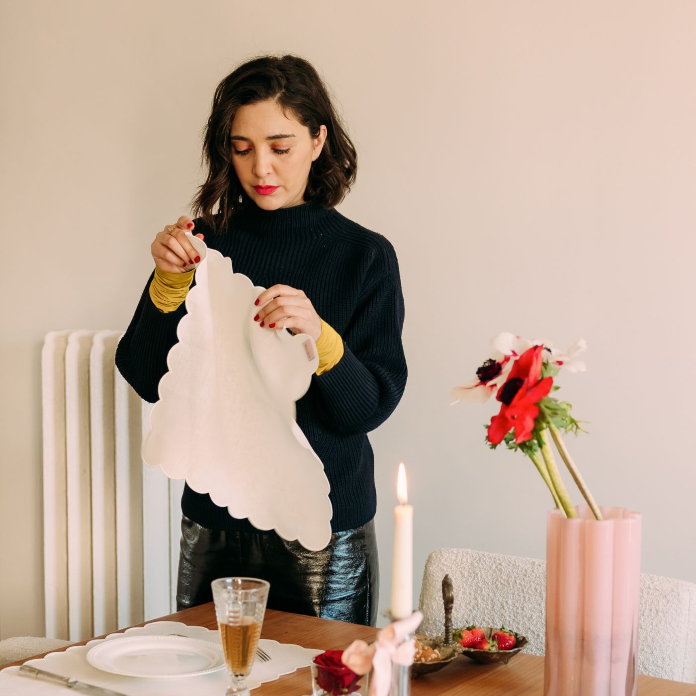 For Valentine's Day, we had the pleasure of collaborating with Gaëlle Mancina , a talented scenographer and founder of Sans Façon, to create "the loving table." Gaëlle, passionate about tableware and a fan of mixing antique and contemporary objects, designed a table that embodies elegance and romance.