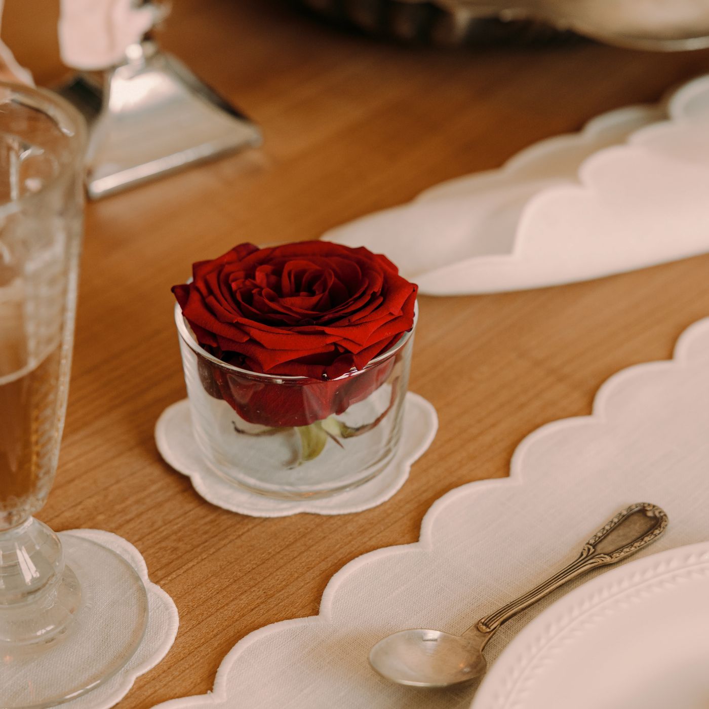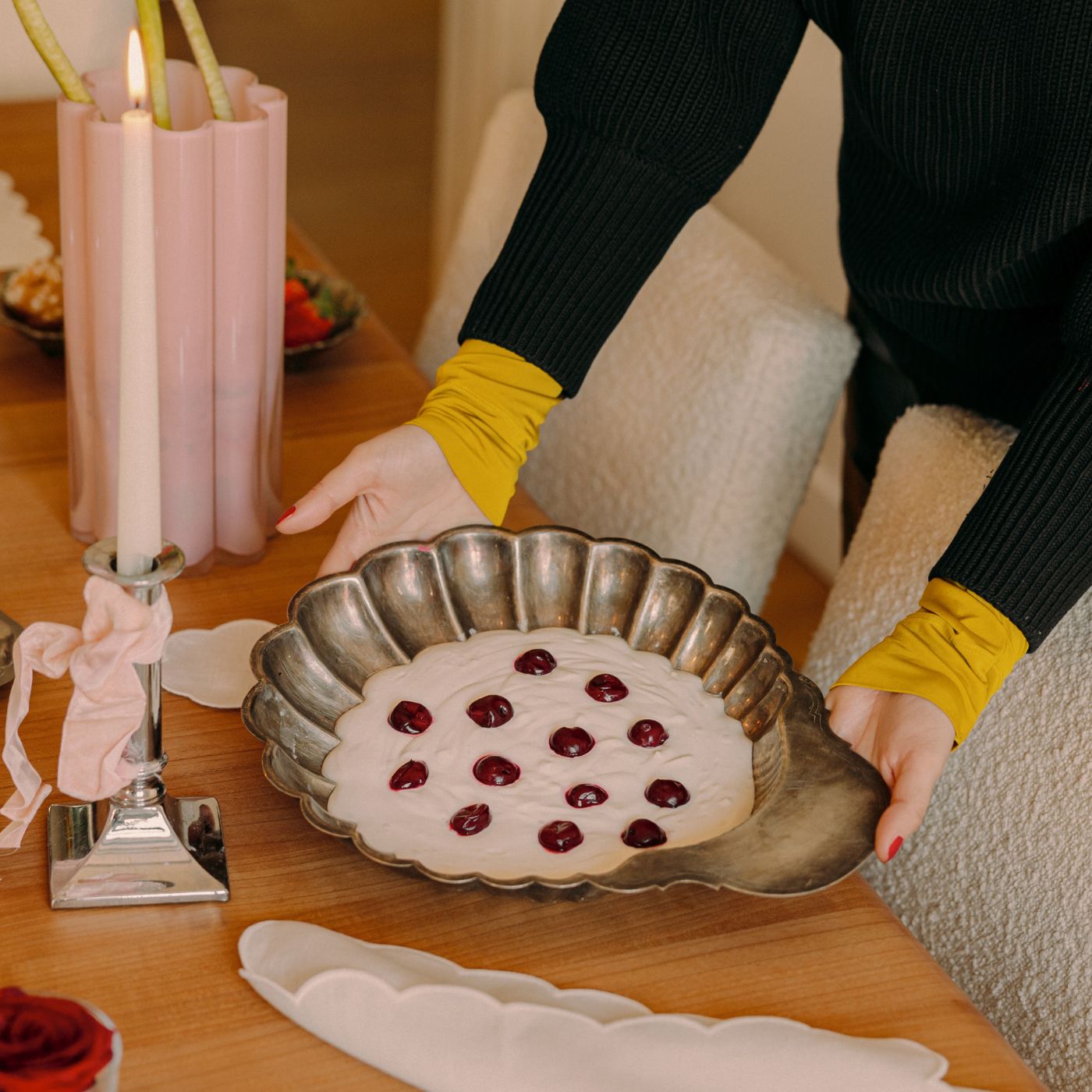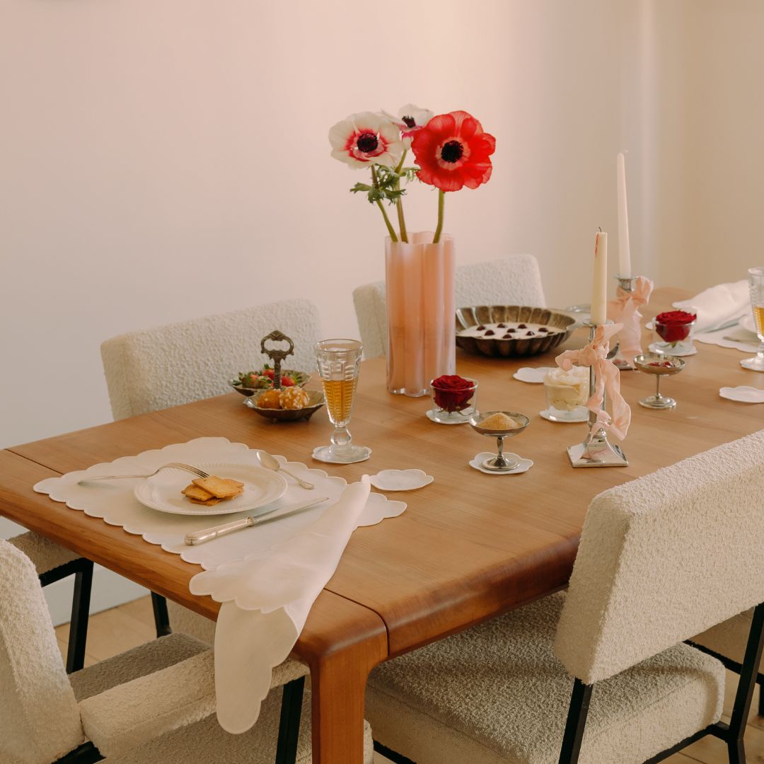 For Valentine's Day, we had the pleasure of collaborating with Gaëlle Mancina , a talented scenographer and founder of Sans Façon, to create "the loving table." Gaëlle, passionate about tableware and a fan of mixing antique and contemporary objects, designed a table that embodies elegance and romance.