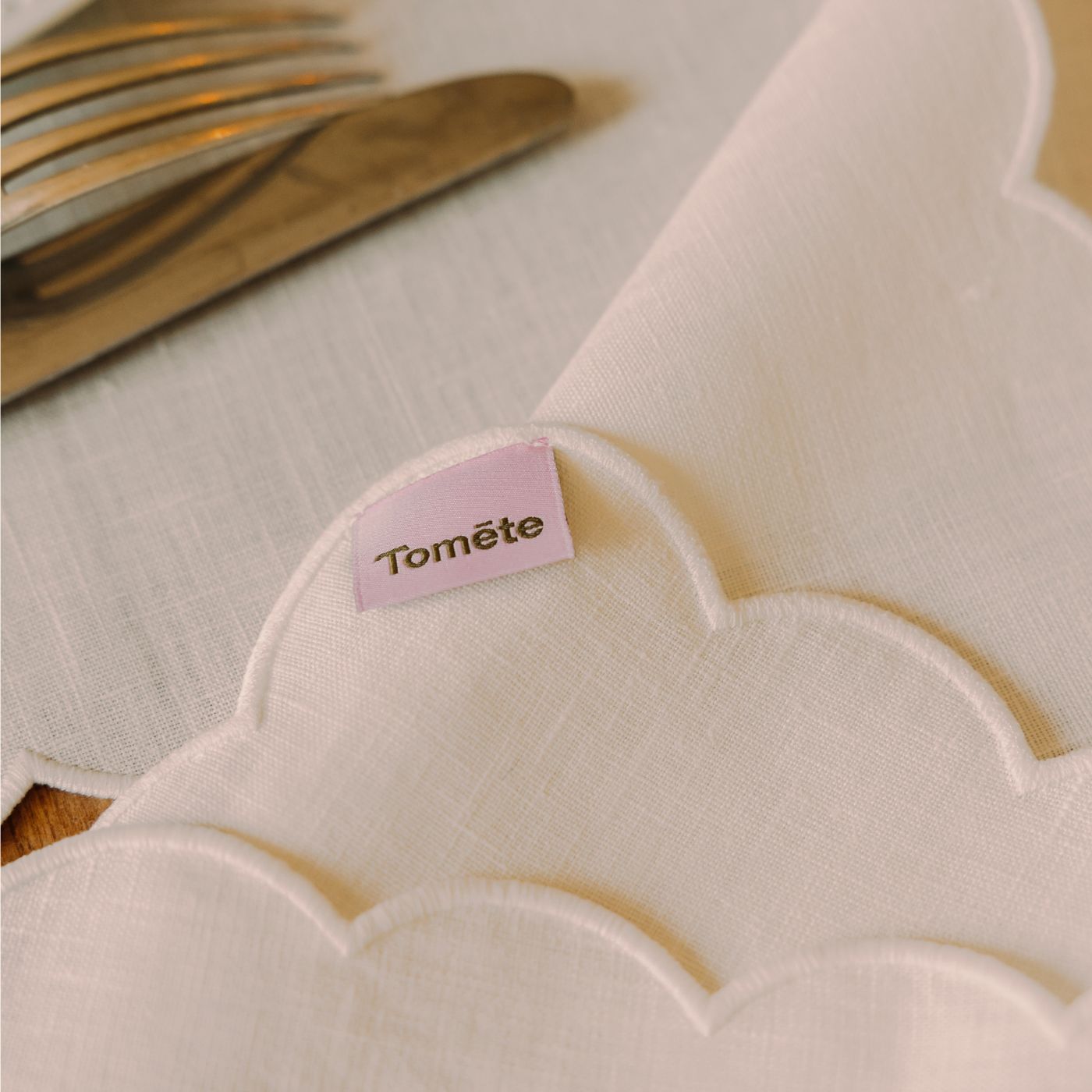 Table linens become a common thread here: a table runner composed of coasters, flowers, and food, creating a visual connection between the two lovers. A sensitive and modern approach, where every detail invites complicity.