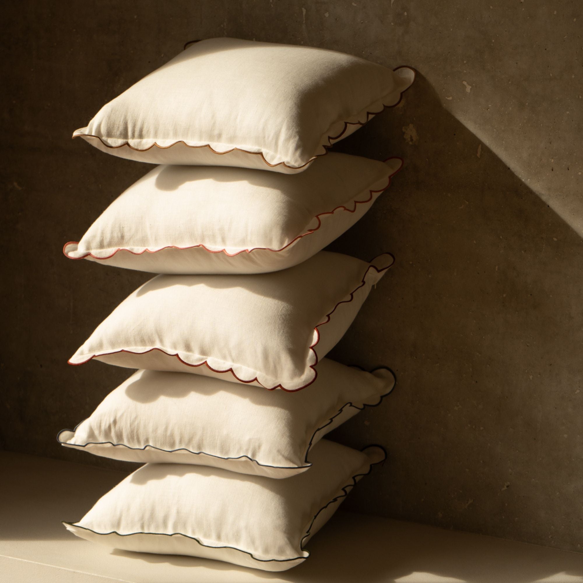 Our scalloped cushions are made in the European Union from the most local and sustainable natural material: linen.