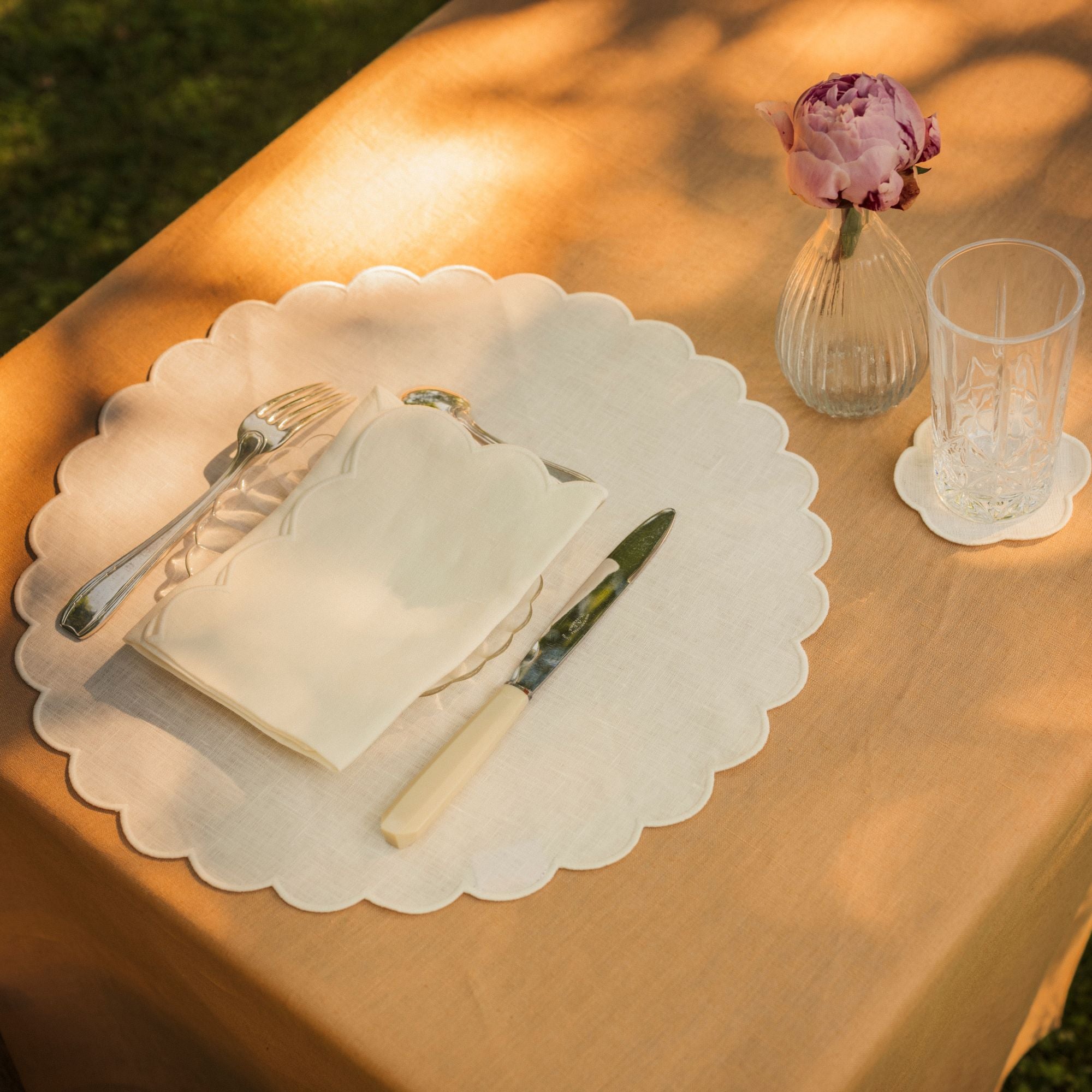 Our round scalloped placemats are made in the European Union from the most local and sustainable natural material: linen.