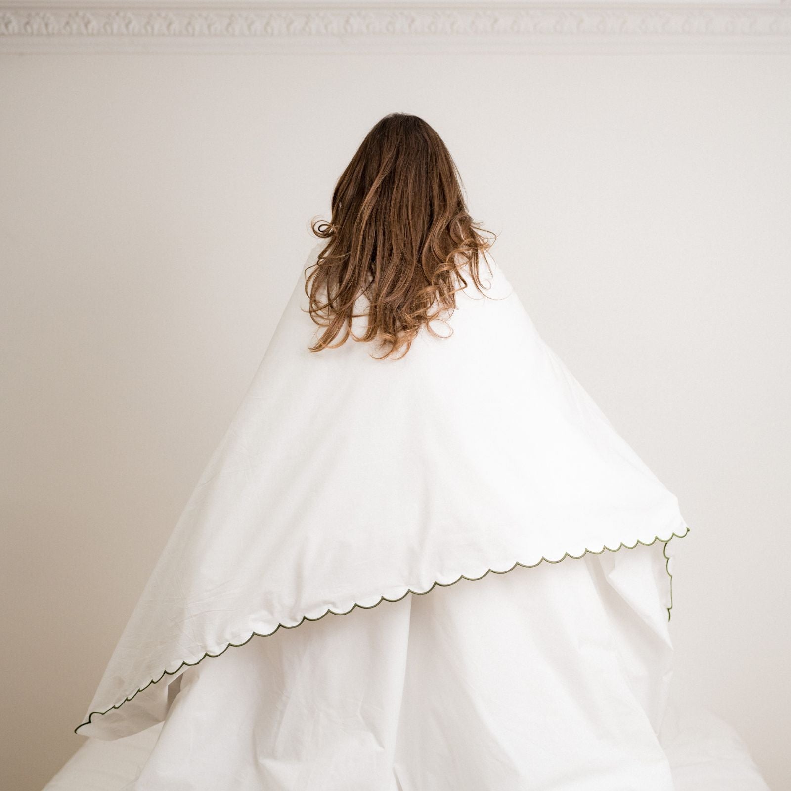 Proposé dans un coton percale blanc intemporel, facile à intégrer dans tous les intérieurs, notre linge de lit festonné est parfait pour décorer votre chambre avec chic et originalité. La broderie festonnée est réalisée par un atelier spécialisé avec une grande rigueur, pour un rendu très résistant et impeccable.