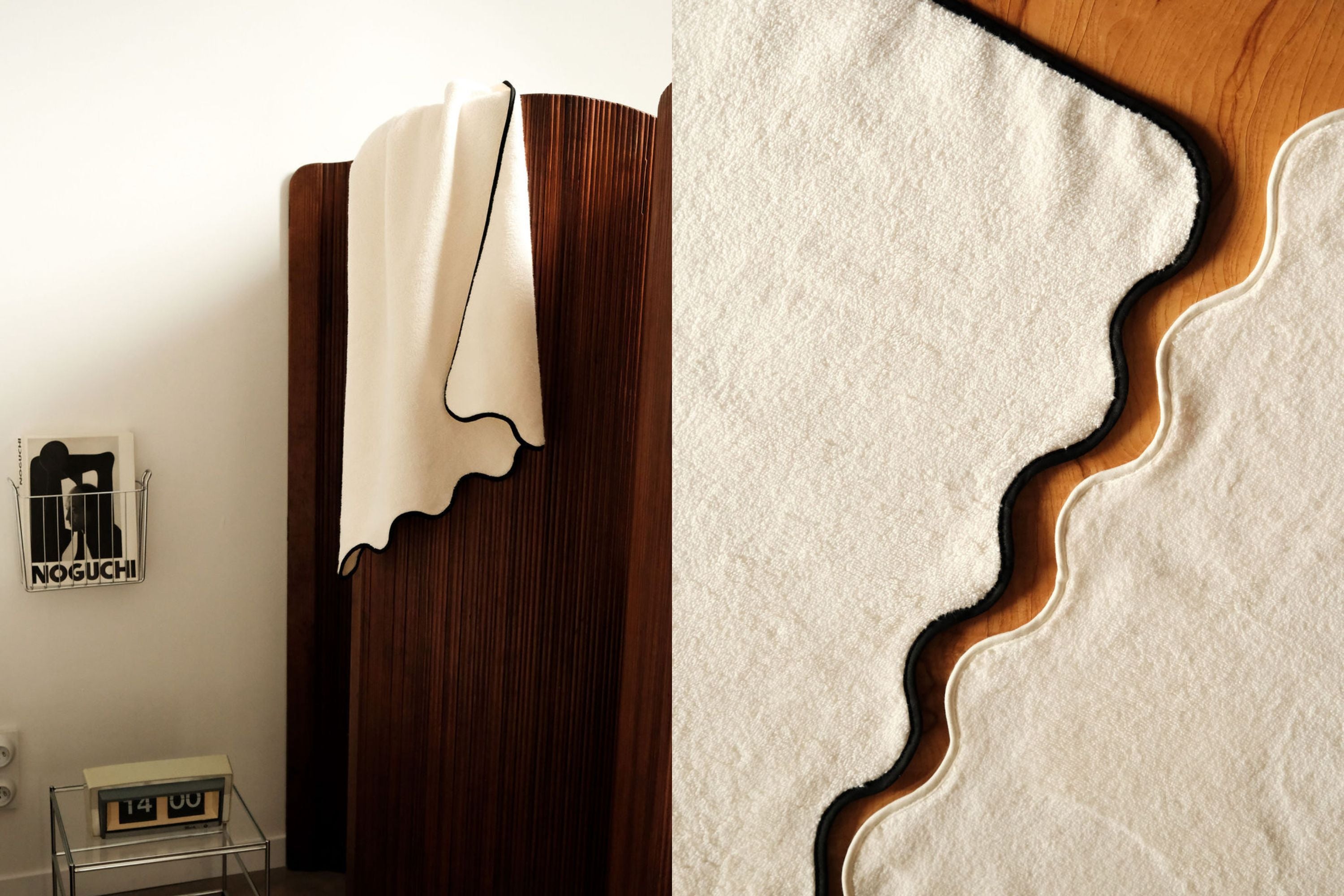 Le tapis de bain ondulé en coton ivoire & bordeaux