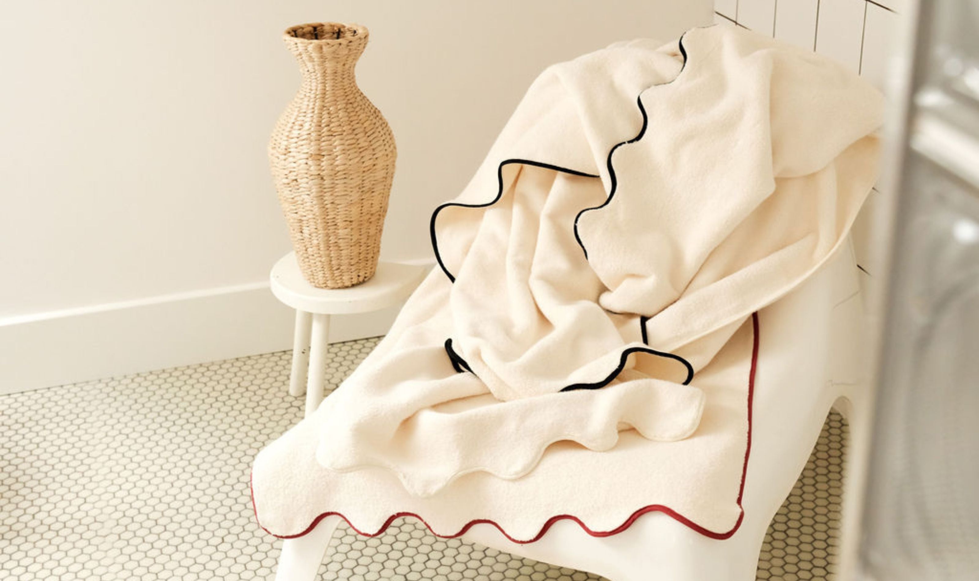 Fidèle à notre souhait de proposer du linge de maison aussi durable que désirable, notre ligne de bain s’habille de trois variations élégantes : ivoire/biais ondulé ivoire, ivoire/biais ondulé bordeaux et ivoire/biais ondulé noir. Des teintes intemporelles et raffinées qui s’intègrent facilement dans toutes les salles de bain.
