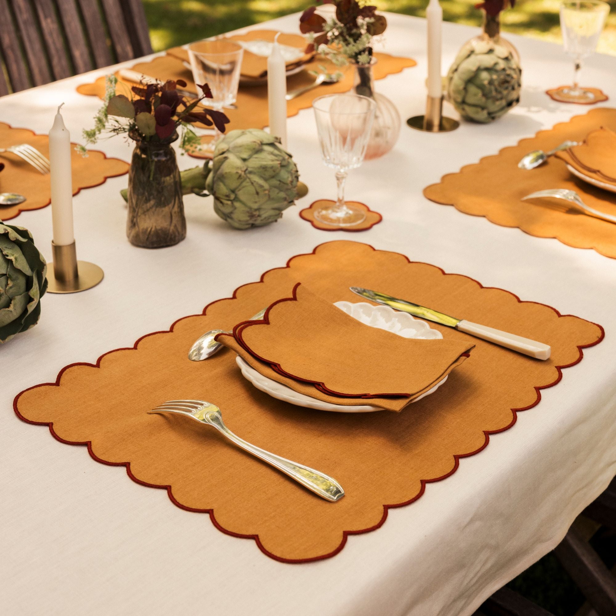 PRÉCOMMANDE - Les sets de table rectangulaires festonnés en lin Ocre jaune & Tomette (lot de 2)